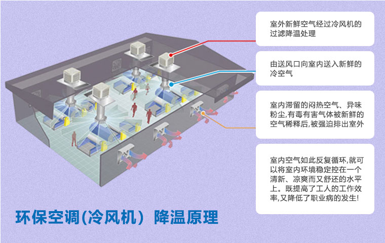 研究表明,舒適的工作環(huán)境可以提高生產(chǎn)力,環(huán)??照{(diào)(冷風(fēng)機(jī))可以在炎熱的天氣中提供有效的通風(fēng)降溫解決方案,創(chuàng)造舒適良好的生產(chǎn)環(huán)境